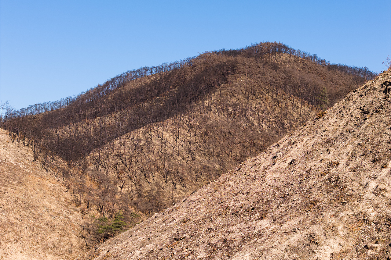 Photograph(사진), 의성, 산불현장, Asia(아시아), Korea(한국), 경상북도, Landscape(풍경), Nature(자연), Mountain(산), 거친땅(Rough, Desert Land), Forest(숲), Tree(나무), Air(공기), Layer(겹), 거친(Coarse, 거칠다, Rough)