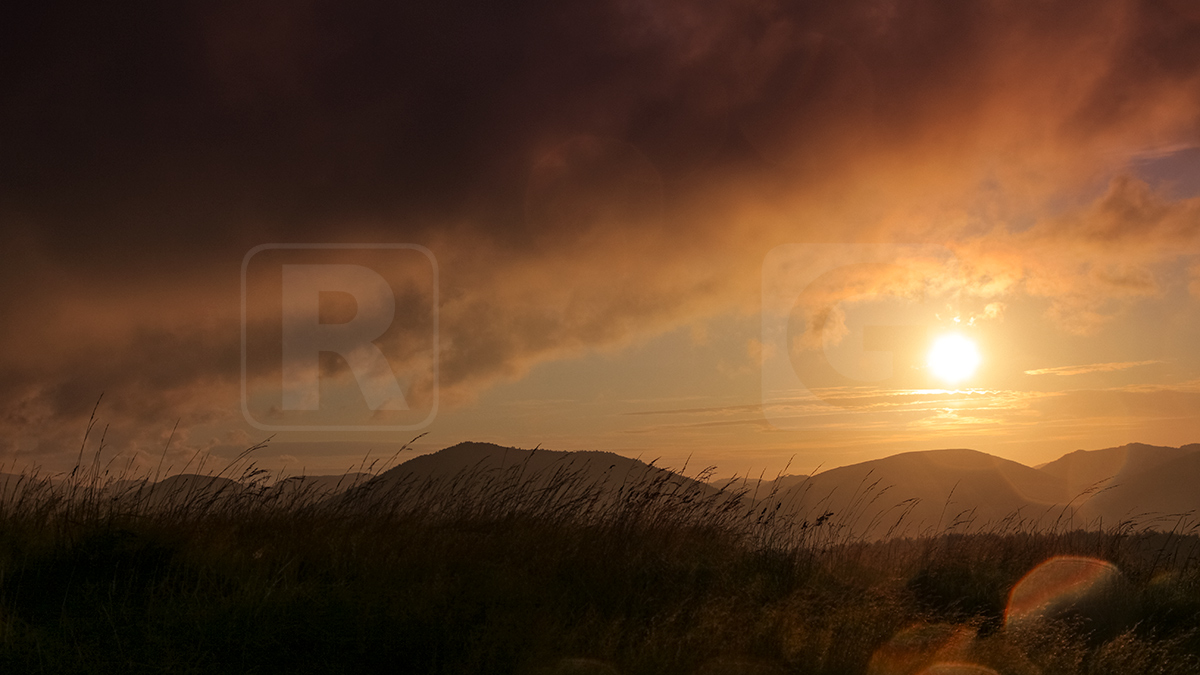H010909, Photograph(사진), Jejudo(Jeju Island, 제주도), Asia(아시아), Korea(한국), Background(배경), Landscape(풍경), Nature(자연), Mountain(산), Air(공기), Grass(풀), 오름(Oreum), 아름다운-강산(Beautiful-Korea), Meadow(초원), High(높은, 고원), Sun(태양), Sunset(일몰), Weather(날씨), Cloud(구름), Layer(겹), Orange(Yellow)
