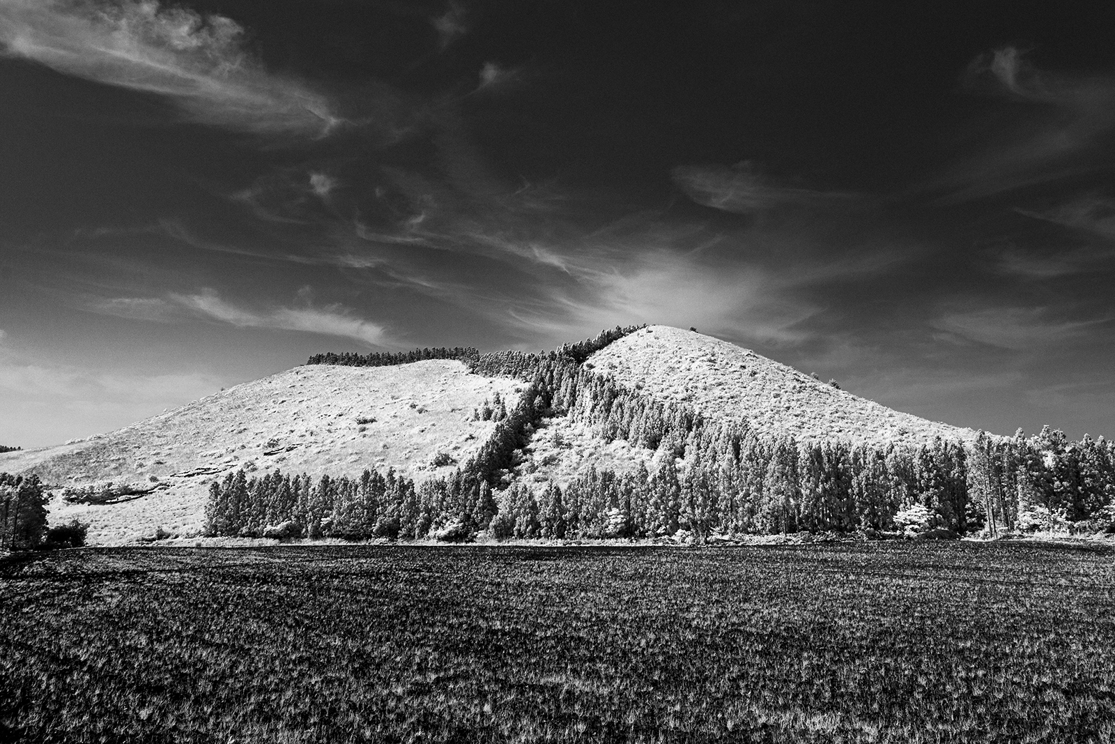 Photograph(사진), 흑백사진(Black-and-White), Jejudo(Jeju Island, 제주도), Asia(아시아), Korea(한국), Landscape(풍경), Nature(자연), 거친땅(Rough, Desert Land), Meadow(초원), 오름(Oreum), 들판, 논, 밭, Plain(평원), Weather(날씨), IR(Infrared, 적외선), 거친(Coarse, 거칠다, Rough), Tree(나무), Grass(풀)