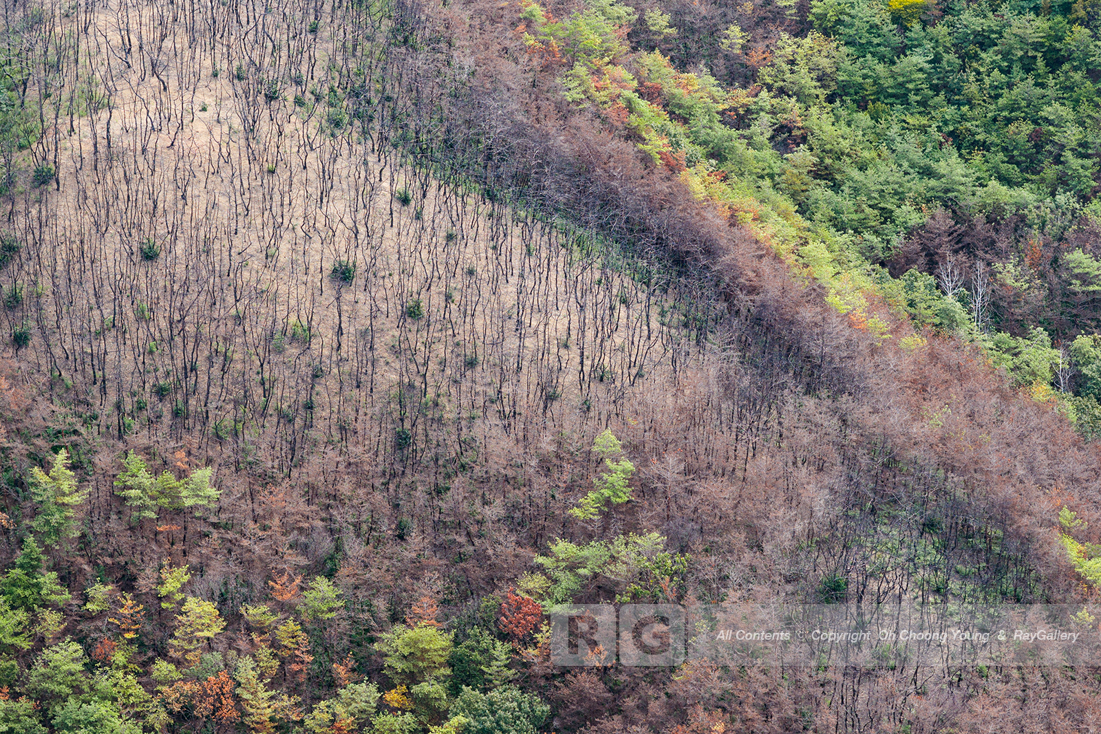 Photograph(사진), 의성, 산불현장, Asia(아시아), Korea(한국), 경상북도, Landscape(풍경), Nature(자연), Mountain(산), 거친땅(Rough, Desert Land), Forest(숲), Tree(나무), Air(공기), Layer(겹), 거친(Coarse, 거칠다, Rough)