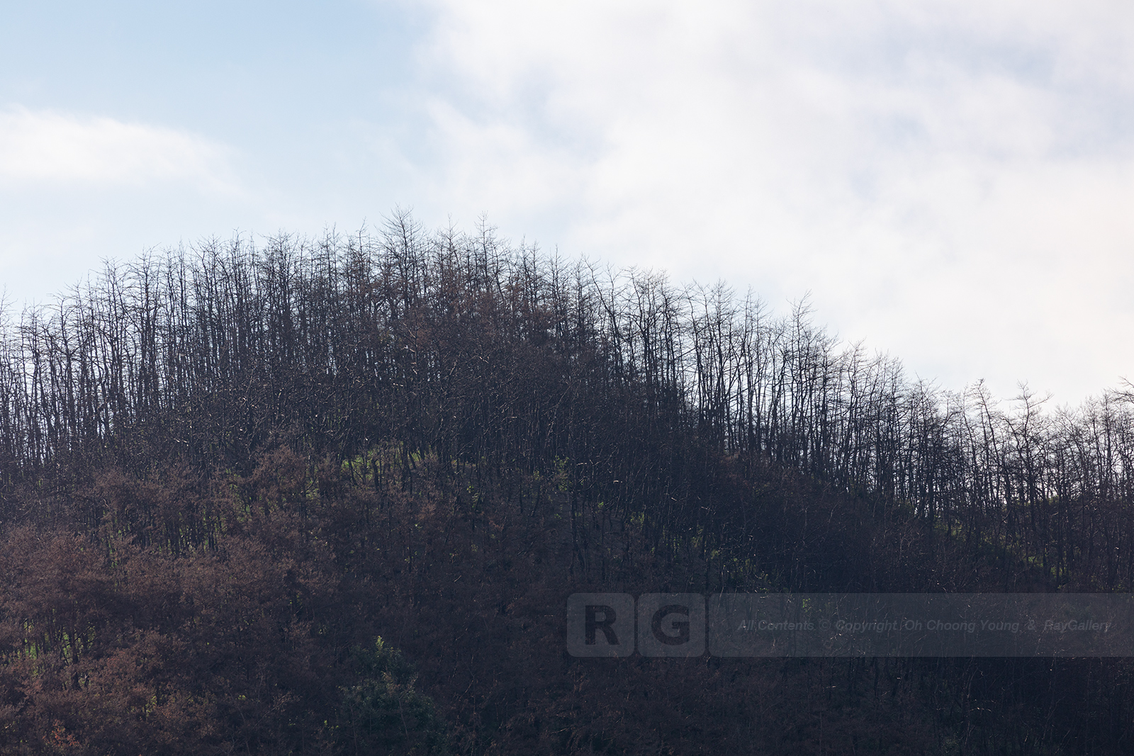 Photograph(사진), 의성, 산불현장, Asia(아시아), Korea(한국), 경상북도, Landscape(풍경), Nature(자연), Mountain(산), 거친땅(Rough, Desert Land), Forest(숲), Tree(나무), Air(공기), Layer(겹), 거친(Coarse, 거칠다, Rough)