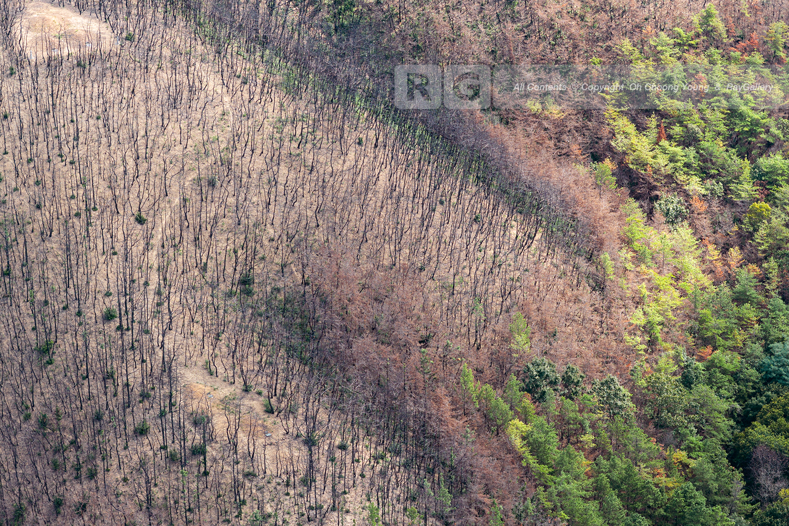 Photograph(사진), 의성, 산불현장, Asia(아시아), Korea(한국), 경상북도, Landscape(풍경), Nature(자연), Mountain(산), 거친땅(Rough, Desert Land), Forest(숲), Tree(나무), Air(공기), Layer(겹), 거친(Coarse, 거칠다, Rough)