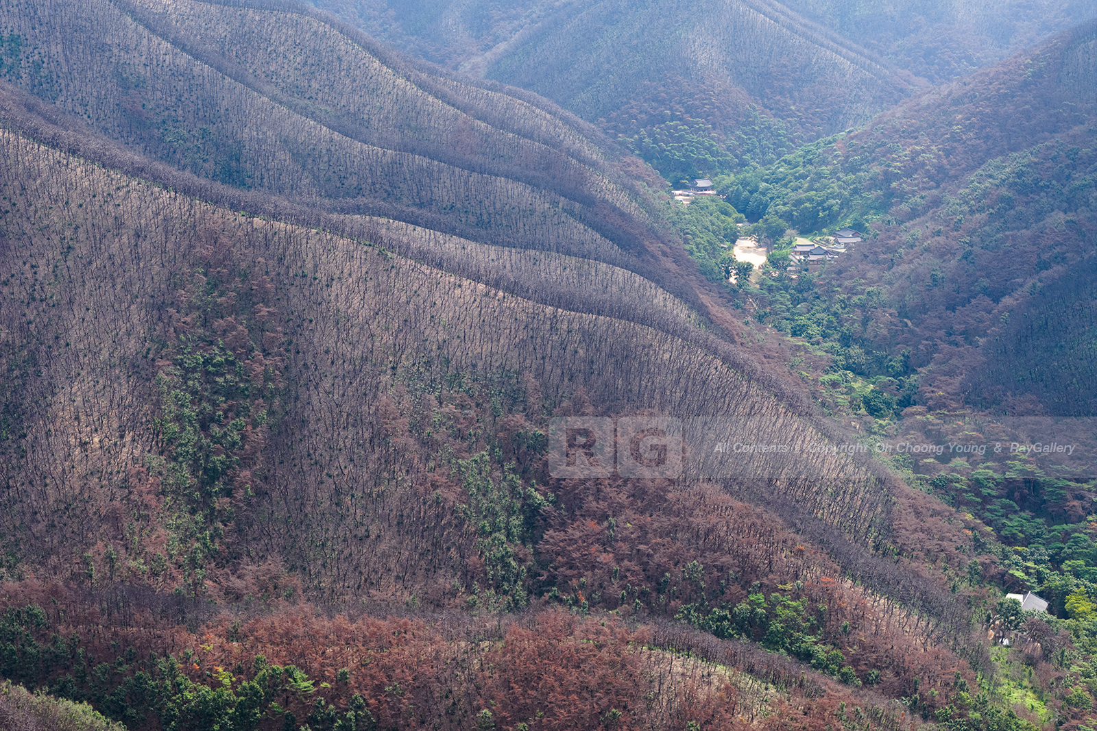 Photograph(사진), 의성, 산불현장, Asia(아시아), Korea(한국), 경상북도, Landscape(풍경), Nature(자연), Mountain(산), 거친땅(Rough, Desert Land), Forest(숲), Tree(나무), Air(공기), Layer(겹), 거친(Coarse, 거칠다, Rough)